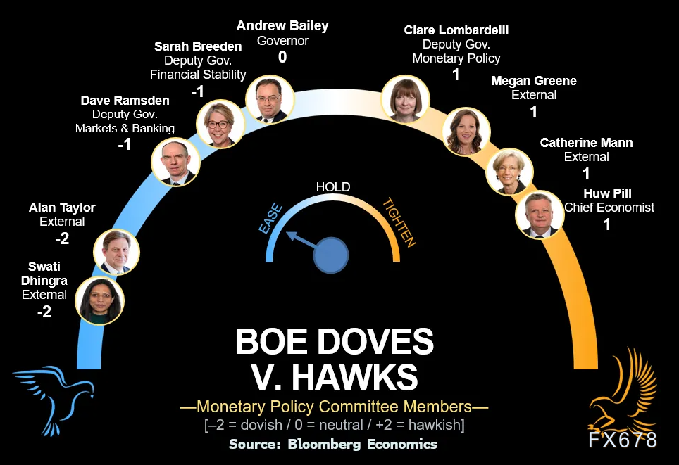 今夜英镑的波动很大可能将主要不是由“是否降息”决定,而是由“如何降息”以及“未来还会怎样”来决定。交易员将像解读美联储一样,仔细剖析英国央行声明中的每一个措辞变化、经济预测的每一个小数点,以及投票分裂的每一张票。最大的风险来自于货币政策委员会内部分歧的细节以及行长贝利对后续路径的任何明确暗示。